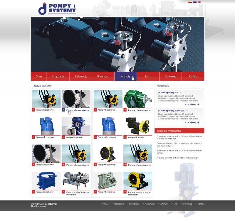 Opracowaliśmy nowy wygląd strony głównej serwisu oraz przygotowaliśmy tematycznie powiązane podstrony wraz z animacjami. link do strony: www.pompy.pl |